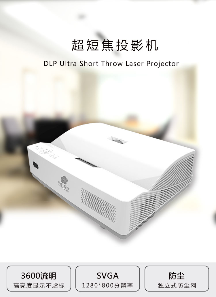 采用DLP激光光源,短距離可投射大尺寸,畫麵清晰,色彩真實,給學生更豐富的色彩展示,更清晰的畫麵