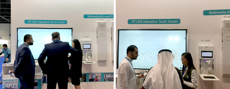 於教育技術的展會。2019年2月26日至28日,在迪拜世界貿易中心方成教學攜最新款液晶一體機亮相     。此款液晶一體機以新穎的銀色超