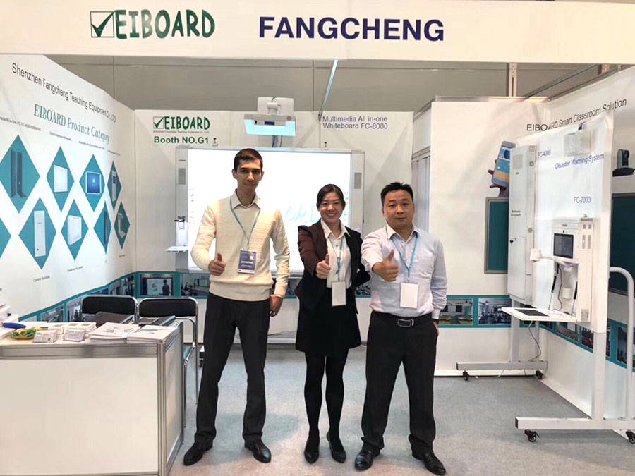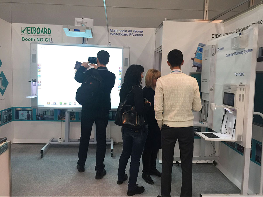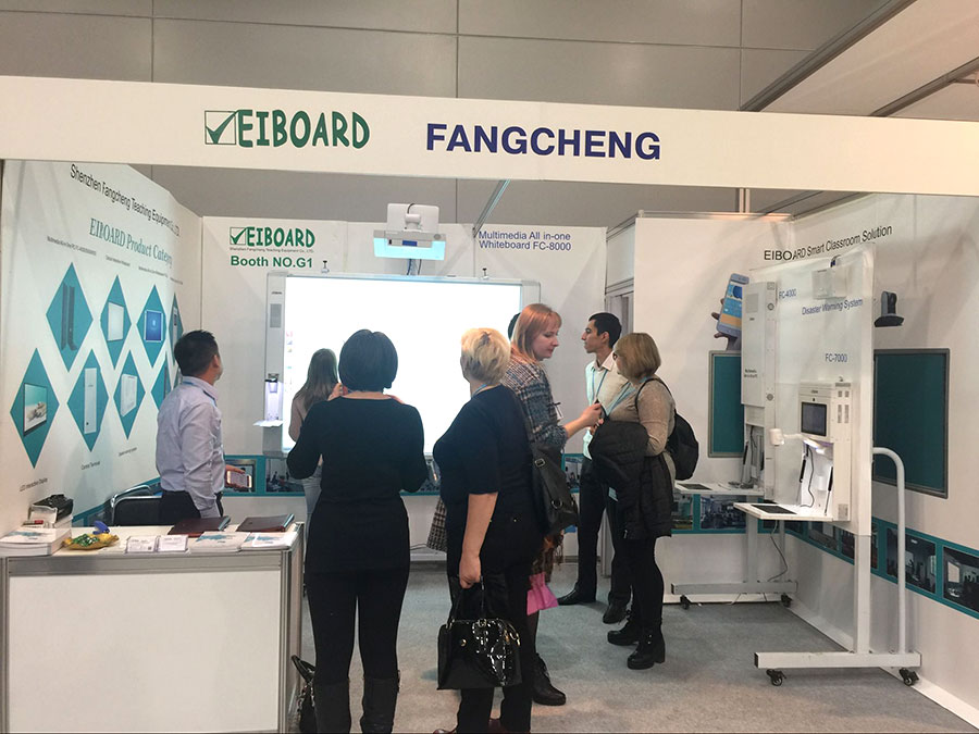方成教學在為期3天展覽會中,所展示的最新款多媒體一體機、一體化電子白板、及教學管理軟件等係列產品,吸引了來自俄羅斯及周邊國家的教育部官員、終端用戶、校務領導、國際貿易商等人士前前參觀並現場體驗。
