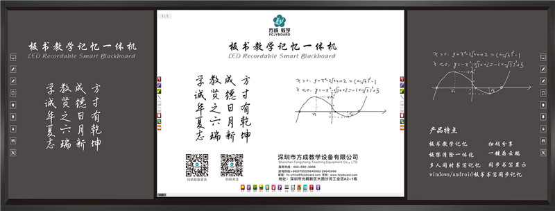 為貫徹落實”十九大”關於加快教育現代化和教育強國建設,推進新時代教育信息化發展,培育創新驅動發展新引擎結合國家“互聯網+”、大數據、新一代人工智能等重大戰略。深圳市方成教學有限公司推出信息技術與學科課堂教學深度融合的新產品——板書教學記憶一體機。