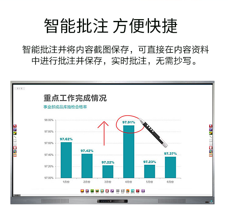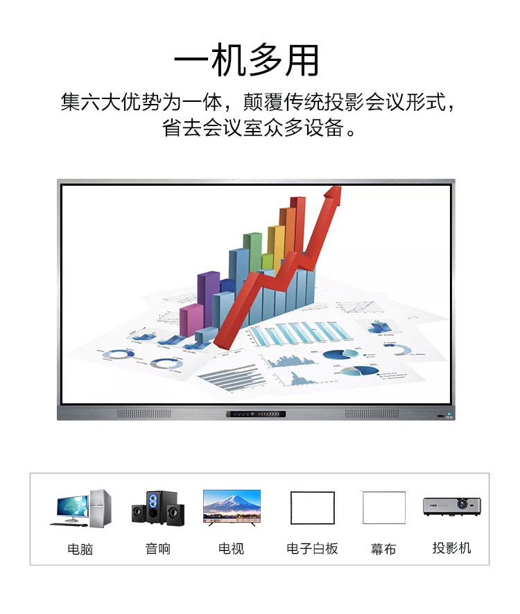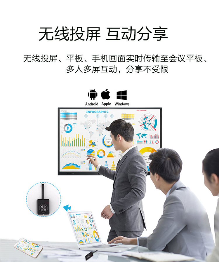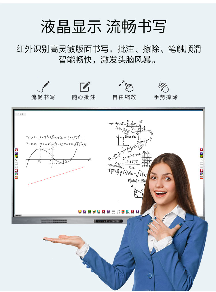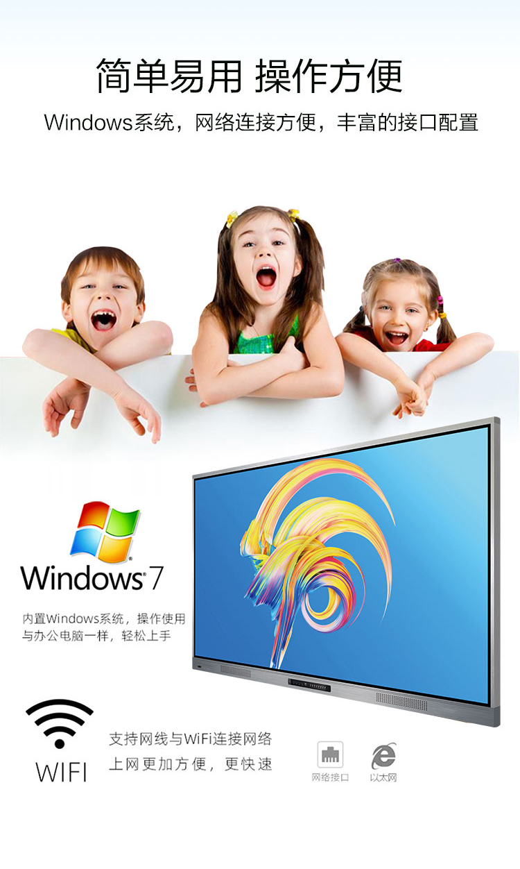 三等邊超窄邊框設計,推拉門鎖保護,4K超高清顯示,以人機交互的方式,搭載互動白板和無線投屏軟件,實現多人書寫、互聯互通的互動教學模式,豐富課堂內容,提高學習氛圍。