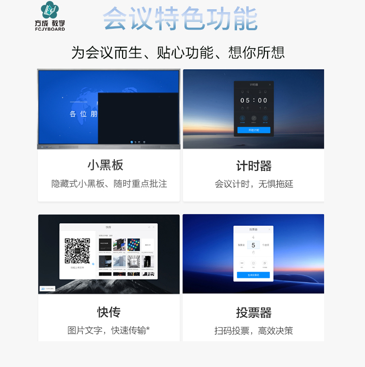 會議平板一體機-超窄邊框三等邊超窄邊框設計,推拉門鎖保護,4K超高清顯示,以人機交互的方式,搭載互動白板和無線投屏軟件,實現多人書寫、互聯互通的互動教學模式,豐富課堂內容,提高學習氛圍。
