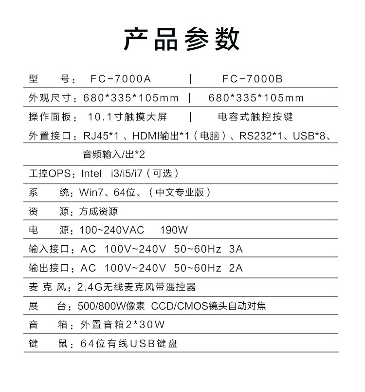 行業首家用模塊化設計理念將電腦、音箱、智能中控、圖像采集設備、鍵鼠、麥克風於一機,改變了傳統的多媒體教學設備零散模式,用小巧輕便的機身把功能集成化,是方成教學的經典之作。