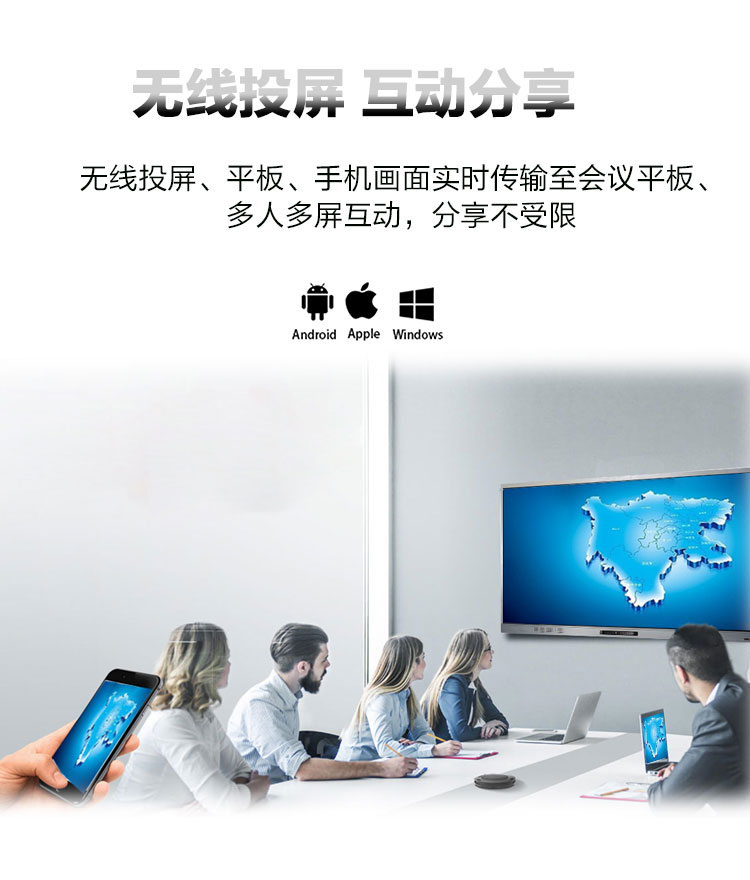5、時尚精簡外觀,會議一鍵啟動(這條特點針對於S款不帶推拉門的會議平板一體機,主要應用在會議場所用)