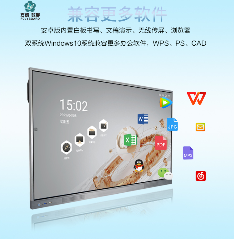 會議平板一體機-超窄邊框三等邊超窄邊框設計,推拉門鎖保護,4K超高清顯示,以人機交互的方式,搭載互動白板和無線投屏軟件,實現多人書寫、互聯互通的互動教學模式,豐富課堂內容,提高學習氛圍。